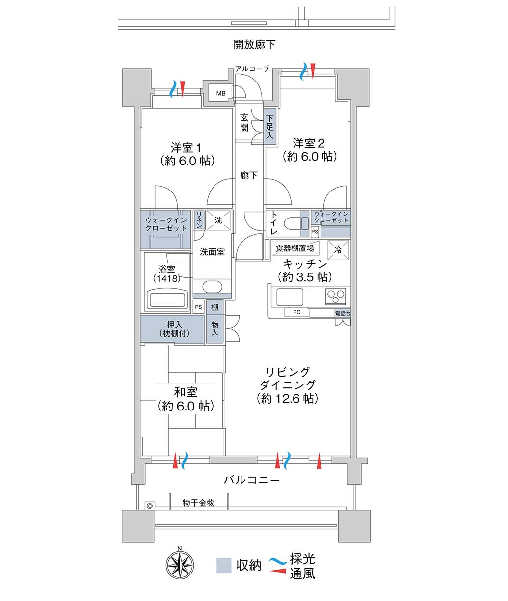 | 間取内訳 | 和 約6.0帖 洋 約6.0帖・約6.0帖 LDK 約16.1帖 |