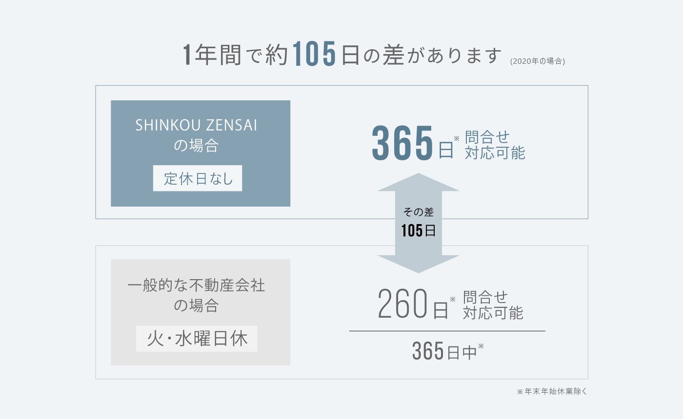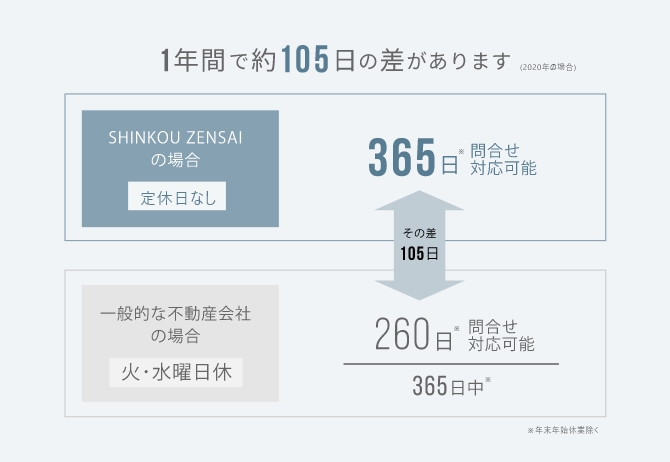 弊社は定休日なしで、お問い合わせに即日対応しています。※年末年始のみ休業