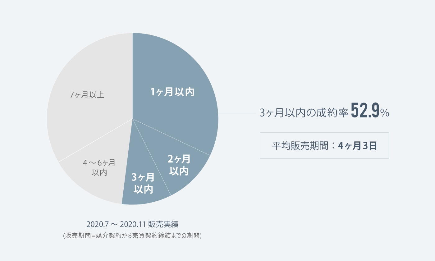 弊社で売却したお客様の約53%が、3ヶ月以内に成約しています。