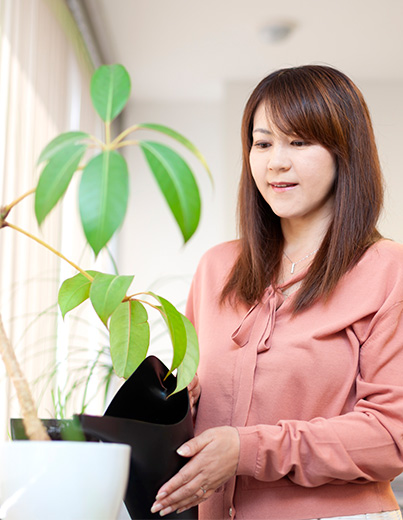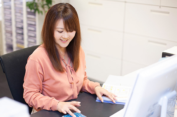 健全な会社経営に直結する経理業務。「効率よく業務にあたるため、優先順位を臨機応変にしています」の言葉通り、日々発生するお金の管理や経営状態を示す資料作成など、正確で迅速な業務の遂行に務めている。22年もの不動産業界経験の中、お客様のお喜びの声を聴き続けている。