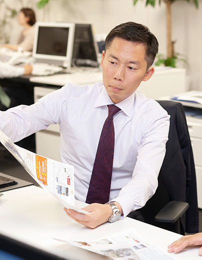 お客様からの様々なご要望・ご質問・ご相談に即座に対応できるのも、日々戦略・戦術を練っているからこそ。「《私の提案を聞いてぜひ売却をお願いしたいと思った》とお客様から感謝のお言葉をいただいた時にやりがいを感じます」と力強く語る。東北地方を中心としたエリアを、社内の誰にも負けない機動力で今日も駆け回っている。